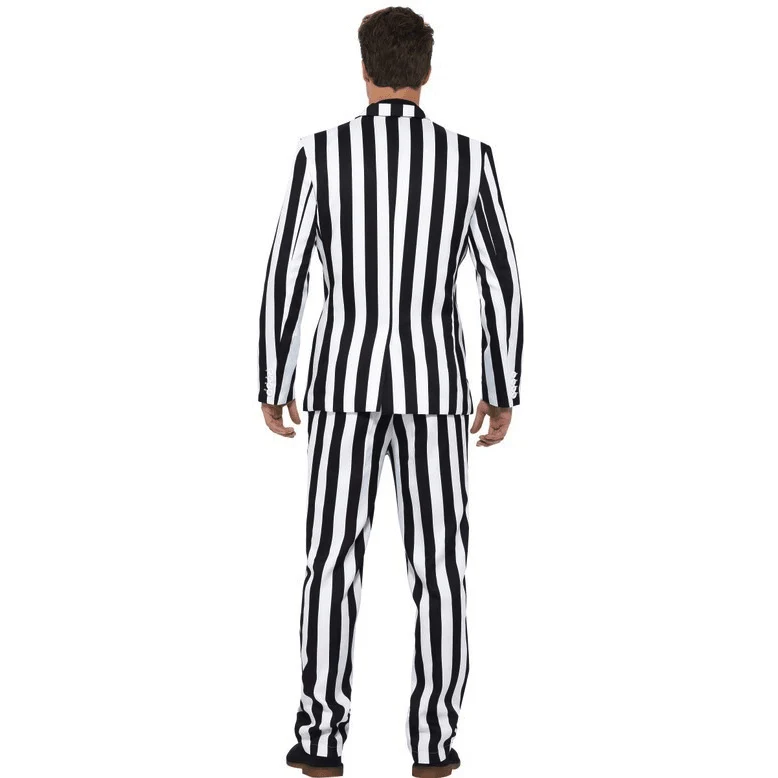 Add a dash of Beetlejuice to your wardrobe with the Humbug Black & White Striped Suit Adult Costume! This outrageous outfit includes a black and white striped jacket, pants and coordinating tie ā because who says you can't look dap while raising a little bit of havoc? Perfect for Halloween, cosplay, or scaring the pants off your friends!